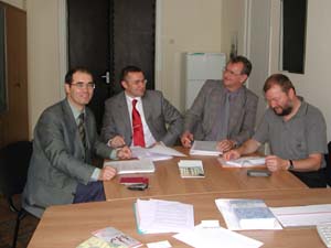Discussion of the joint programme with the Anhalt University of Applied sciences. From left to right: V.I. Nilipovsky (Director of International Projects), A.A.Shimkevich (Vice-Rector of International communications), G. Zaital (Dean of the Faculty of Economics), I.Schmidt (Deputy to the Dean of the Fuculty of Economics).