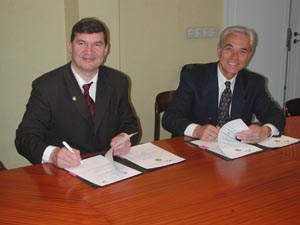 Mr. Andre Laurent and rector of MSULM, professor S. Volkov are signing the agreement of cooperation. |
